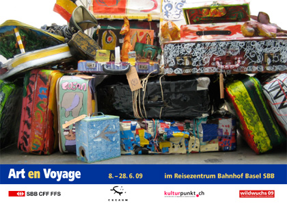 Creahm Fribourg hat 8 befreundete Ateliers aus der Schweiz und Europa einge-laden, ihre Kunst in Koffern zu packen und zum 10jährigen Bestehen von Creahm nach Fribourg zu schicken: Für diese barocke, poetische Geburtstagsausstellung sind beim Atelier Creahm gefundene, neuerfundene Kunstobjekte angekommen, die zu inneren Reisen anregen. Zusehen sind die Werke vom 8 bis 28. Juni während der Art|40|Basel und wildwuchs 09 im Reisezentrum Bahnhof Basel SBB!